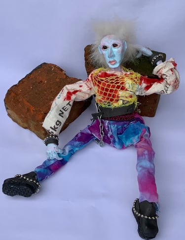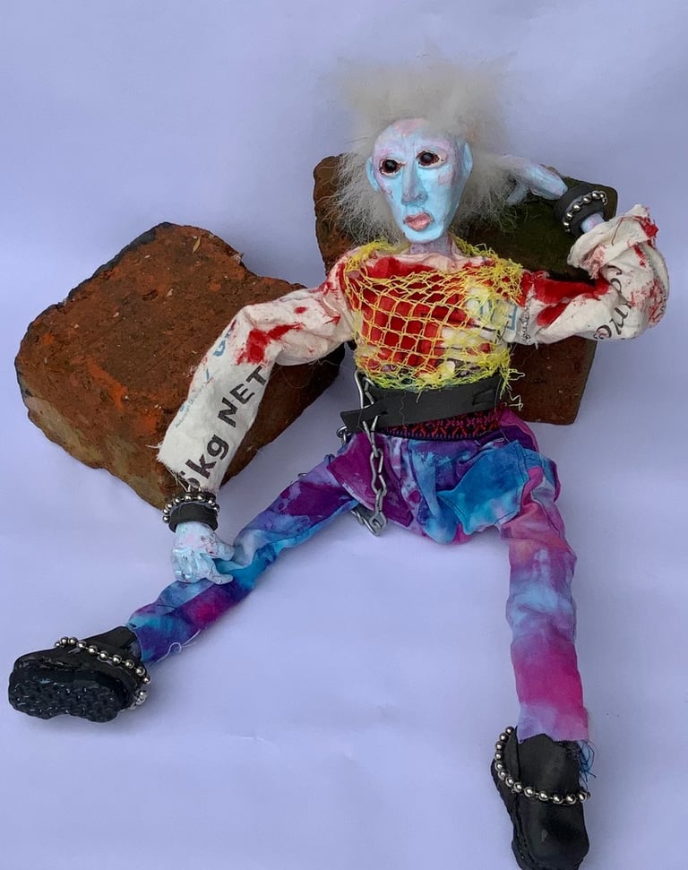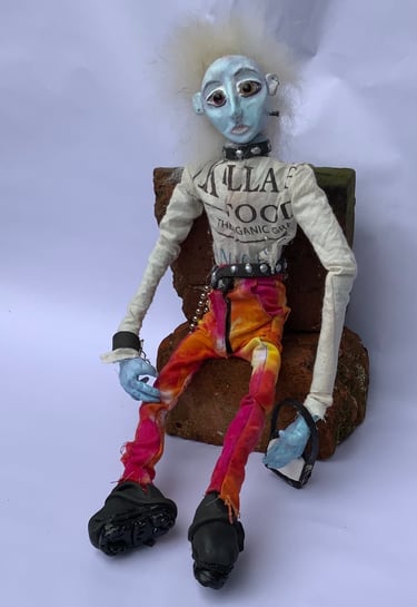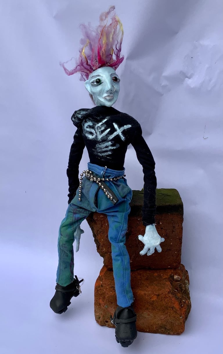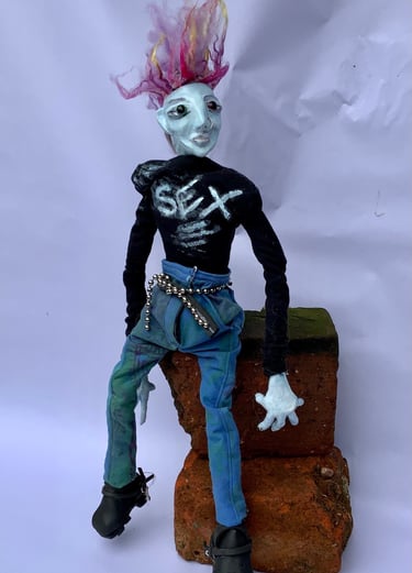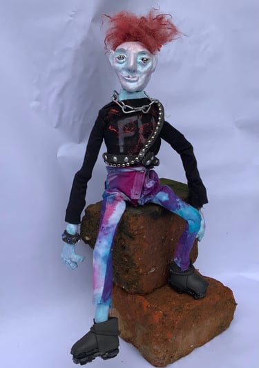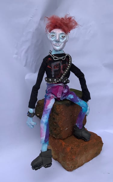 These art dolls are ball jointed. I do not use moulds or blanks which makes every doll hand made and unique. I was inspired by some old photographs I took of Kings Road, London in 1979. The punks were like nothing I had ever seen, amazingly original and truly out there.